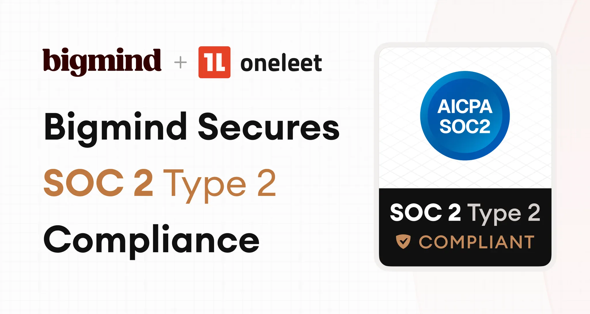 We're proud to announce that Bigmind has achieved SOC 2 Type 2 compliance, covering the Security, Availability, and Confidentiality Trust Services Criteria.